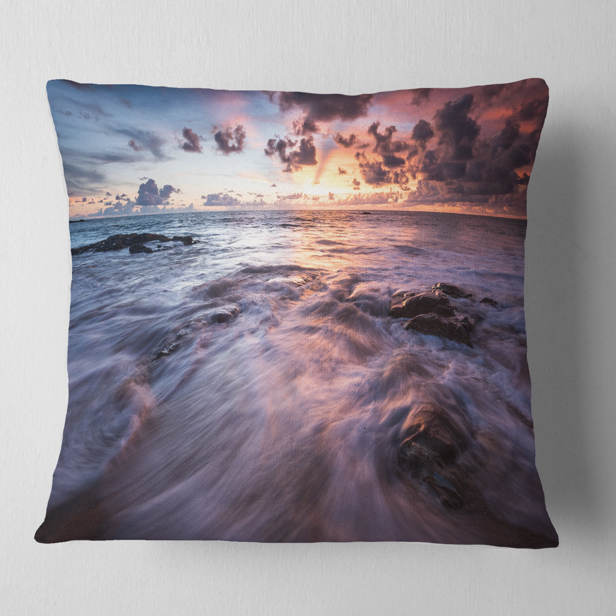 Designart Waves Hitting Rocky Beach Beach Photo Throw Pillow 16x16 Walmart Com
