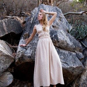 Organic Linen Beige Dress By Offon Large Nude Ethics